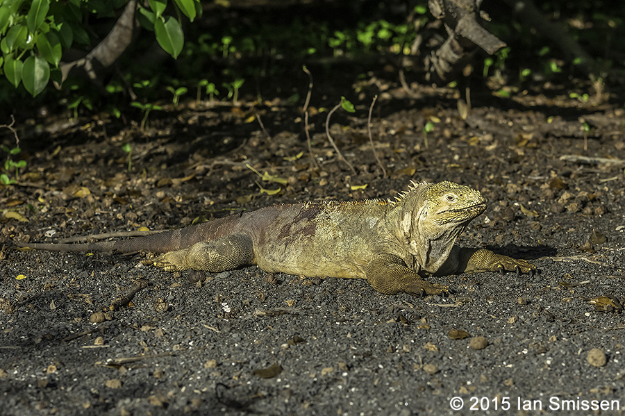 She only moved away when challenged by another iguana. We waited around to see if there would be an altercation but there was nothing more than a few head nods before the challenger wandered off into the bush and the original iguana lay down in the shade. So, we move a little further along the track and found an even larger (probably male) iguana.