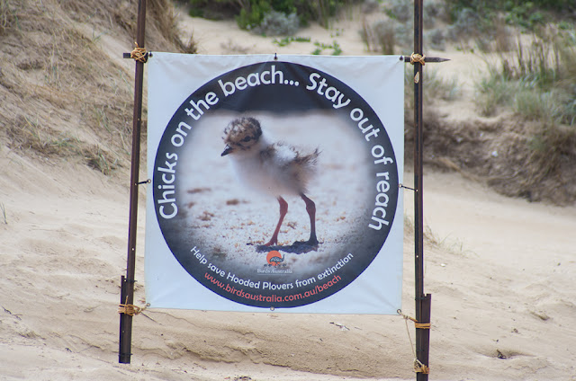 As the notice on the first sign indicated, there is one pre-fledging chick remaining (due to take flight on Tuesday) so we thought we'd go and check them out this morning. This meant the dog missed his morning beach walk but such are the sacrifices for conservation and bird photography.